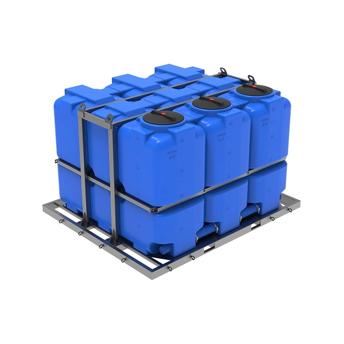 безопасная транспортировка: прочная обрешетка надежно фиксирует емкости, предотвращая их смещение в любом направлении, а низкий центр тяжести всей кассеты обеспечивает повышенную устойчивость транспортного средства в пути;